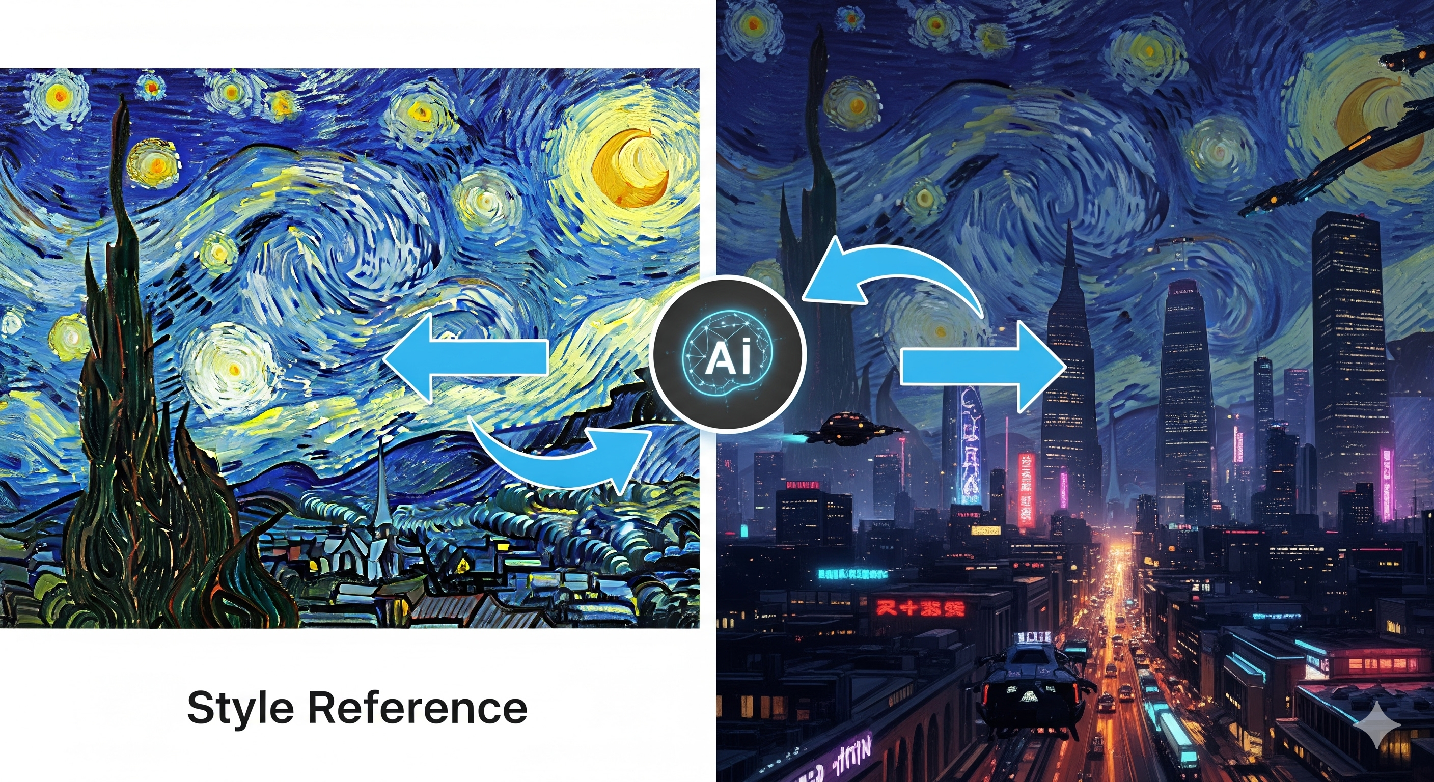 프로 크리에이터의 팁: 단순히 특정 작가의 스타일을 모방하는 데 그치지 말고 ‘창의적 융합’을 시도해 보라. 예를 들어 반 고흐의 ‘별이 빛나는 밤’ 이미지를 스타일 참조로 업로드한 뒤 프롬프트에는 “미래형 사이버펑크 도시의 야경”이라고 입력하는 것이다. AI는 고흐의 강렬한 붓 터치와 색감을 사용하여 세상에 없던 독창적인 사이버펑크 도시를 그려낼 것이다. 이것이 바로 단순한 모방을 넘어선 창조의 영역이다.